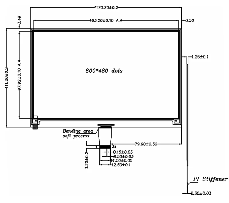 Maximum screen dimensions 171.20 x 112.20 x 1.50 mm